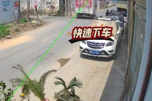 大货车车速过快刹不住,电车车主神预判救了自己一命