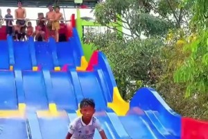 国外小孩哥玩水上滑梯,当真是“八仙过海各显神通”