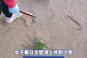 女子春日戈壁滩上收割沙葱,用来炒牛肉最香了!!!