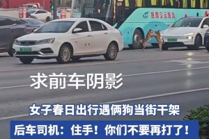 女子春日出行遇俩狗当街干架,后车司机:住手!你们不要再打了!