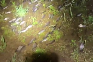 男子春日夜晚发现地里长鱼了,小溪里的鲫鱼全都上岸了!!!