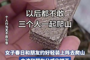 女子春日和朋友约好轻装上阵去爬山,中途和朋友分威化饼干